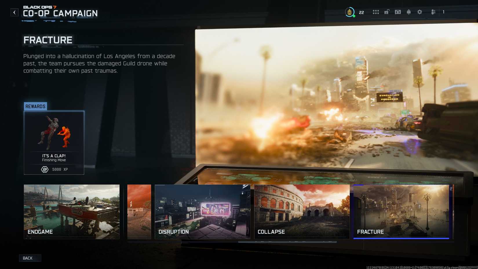 Выполнение миссии Fracture открывает завершающий приём ‘It’s A Clap!’ и даёт вам 5000 XP. Хотя это и незначительный косметический предмет, это одна из одиннадцати наград, которые вы можете получить, пройдя основную сюжетную кампанию.