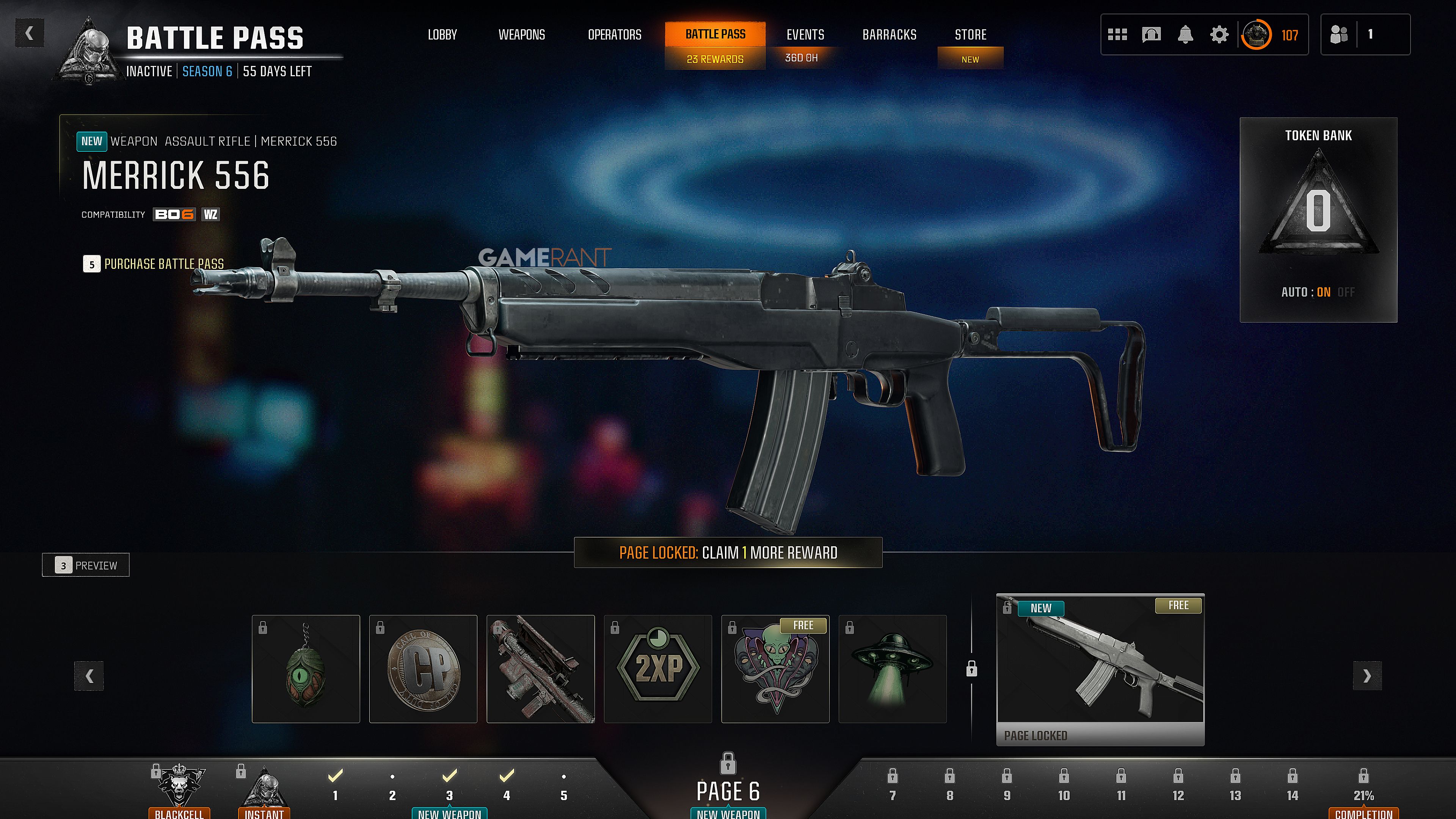 Окей, я очень рад Merrick 556! Это второе оружие, которое можно получить в боевом пропуске сезона 6, и вы найдете его на странице 6. Оно работает так же, как Dresden 9mm – это награда High Value Target за эту страницу. Это означает, что вы можете разблокировать его либо после того, как соберете все остальное на странице 6, либо просто потратите 7 Battle Pass Tokens, чтобы разблокировать все на странице сразу. Довольно круто, правда?
