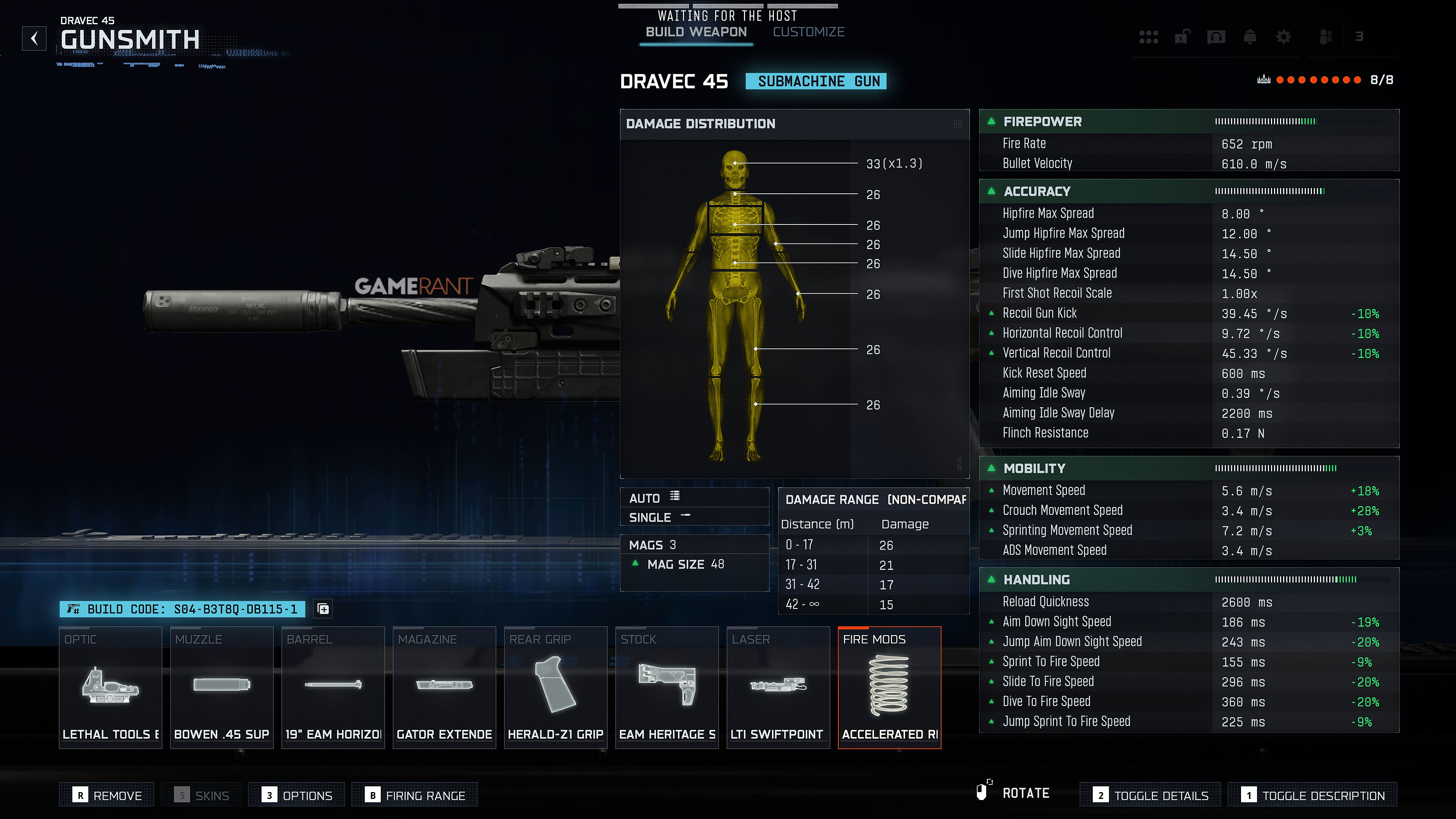 Dravec 45 прост в использовании для любого благодаря минимальной отдаче. С помощью нескольких настроек для улучшения управляемости и повышения эффективности в ближнем бою – в частности, увеличения скорости перемещения боком – он может стать топовым пистолетом-пулеметом. Вот руководство по лучшим модификациям, которые помогут вам в этом.