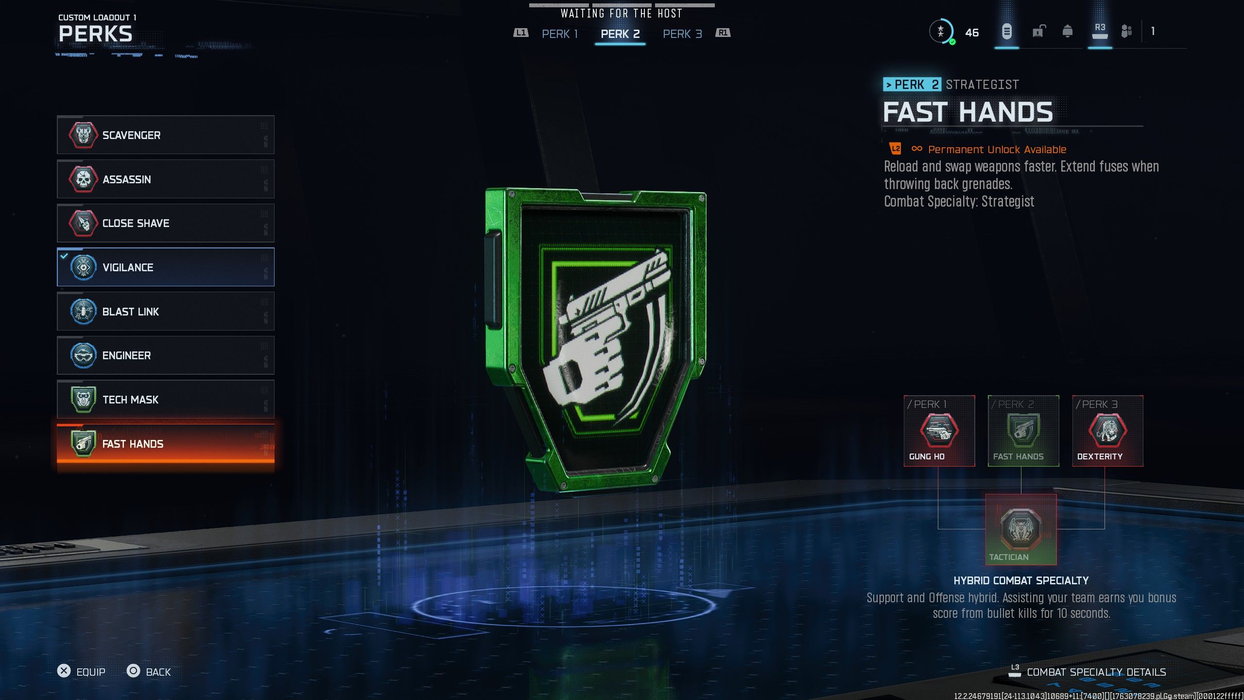 Постоянно перезаряжаетесь или переключаете оружие во время сражений? Навык ‘Fast Hands’ может помочь! Он позволяет вам перезаряжать и переключаться на ваше дополнительное оружие намного быстрее, давая вам решающее преимущество, когда ваше основное оружие заканчивается. Хотя он также немного увеличивает время, необходимое для приготовления гранаты, большинство игроков все равно не используют традиционные гранаты. Если вы часто перезаряжаетесь или хотите быстро переключиться на резервное оружие, ‘Fast Hands’ — это надёжный выбор.