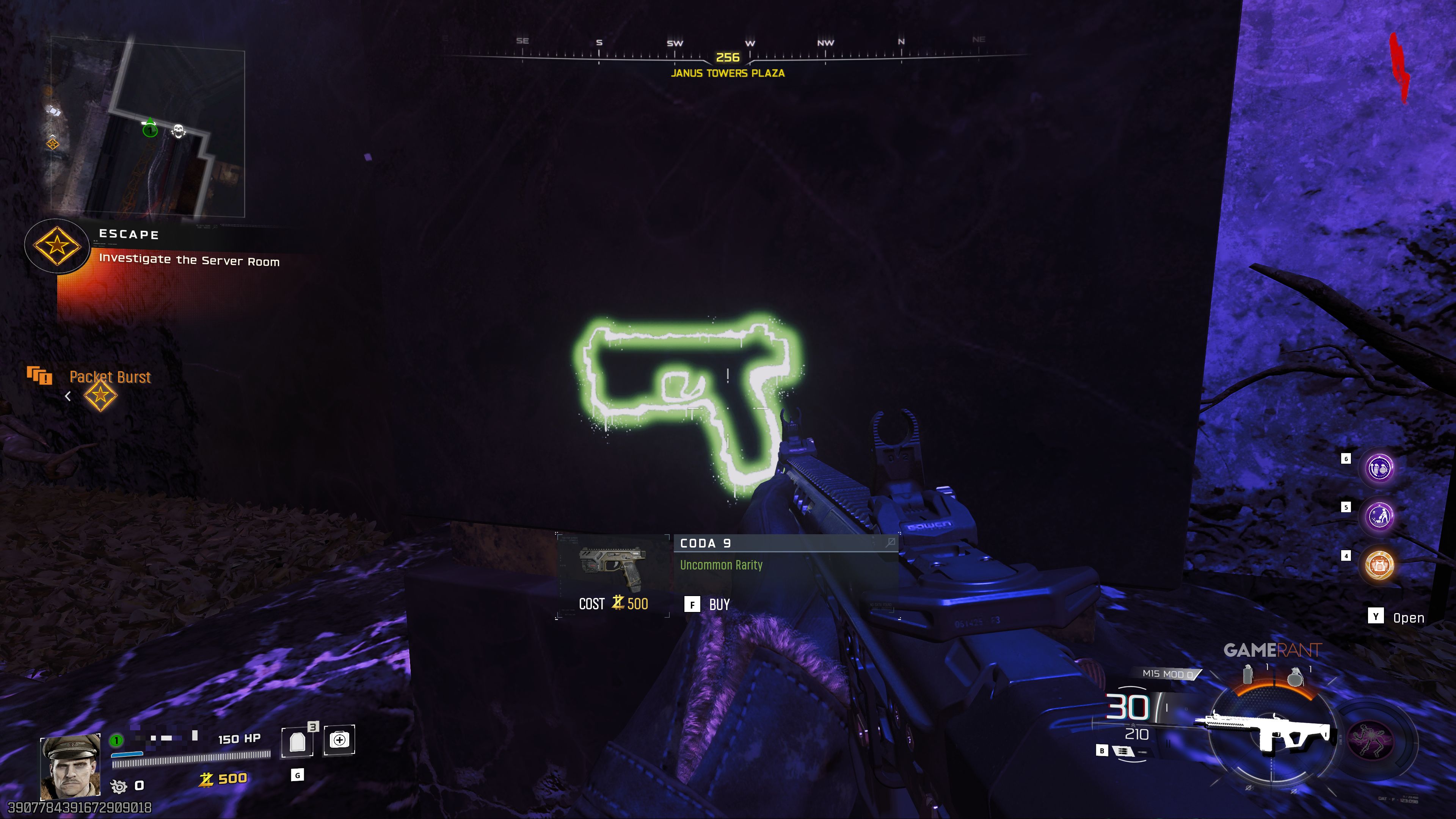 CODA 9 находится на северной стороне площади Janus Towers Plaza, прямо рядом с местом, где игроки начинают матч.