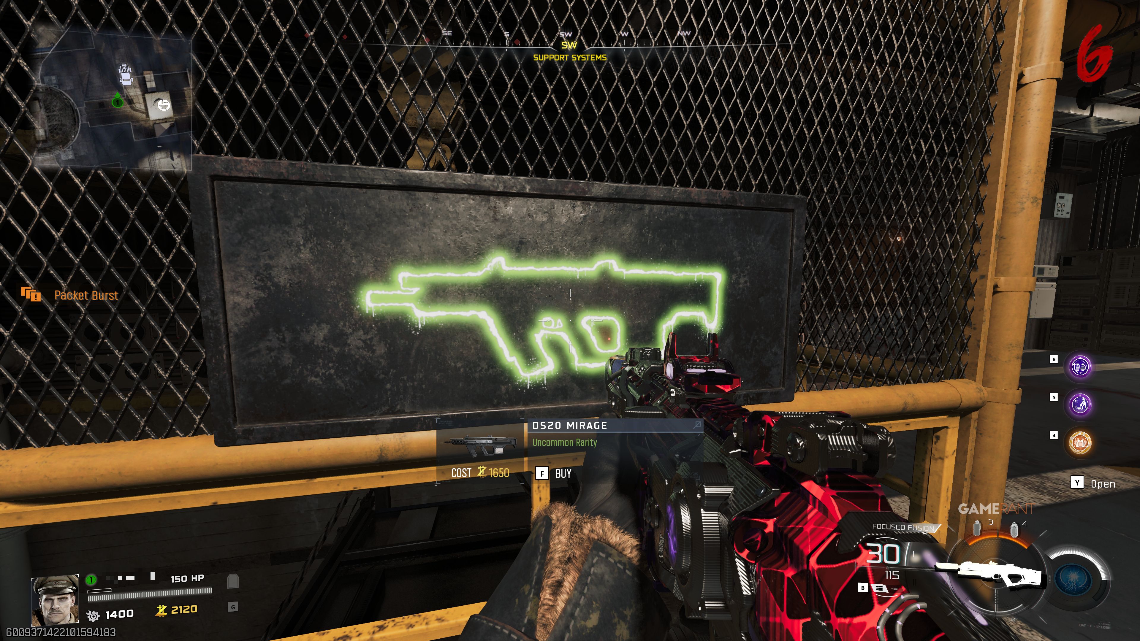 Вы можете найти DS20 Mirage Wall Buy в области Support Systems под космодромом Заря. Она находится за запертой дверью слева, когда вы направляетесь к выходу 115 и баррикадам.