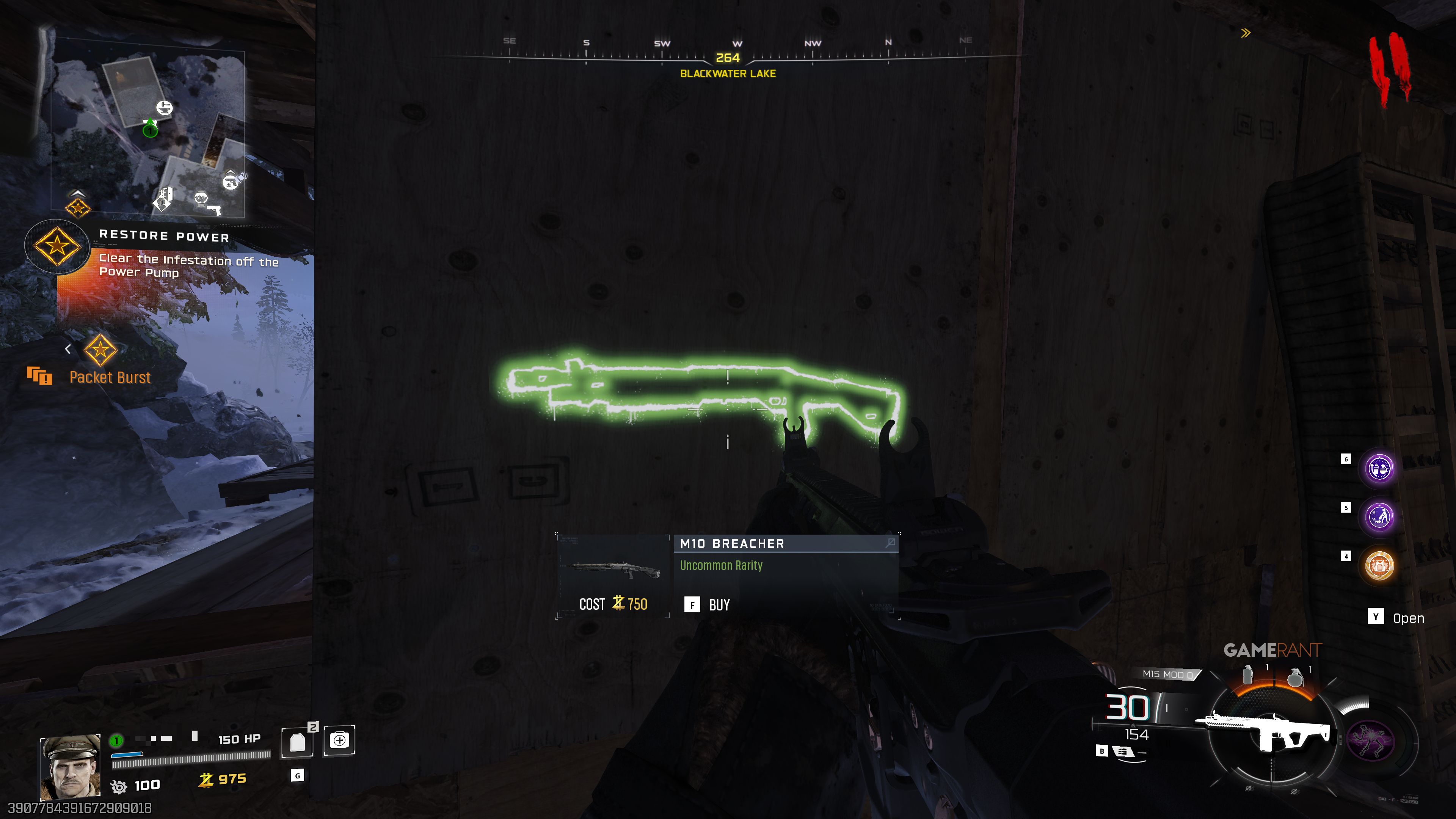 Вы можете найти M10 Breacher Wall Buy снаружи сарая в юго-западном углу озера Blackwater Lake. Рядом также есть Crafting Bench.