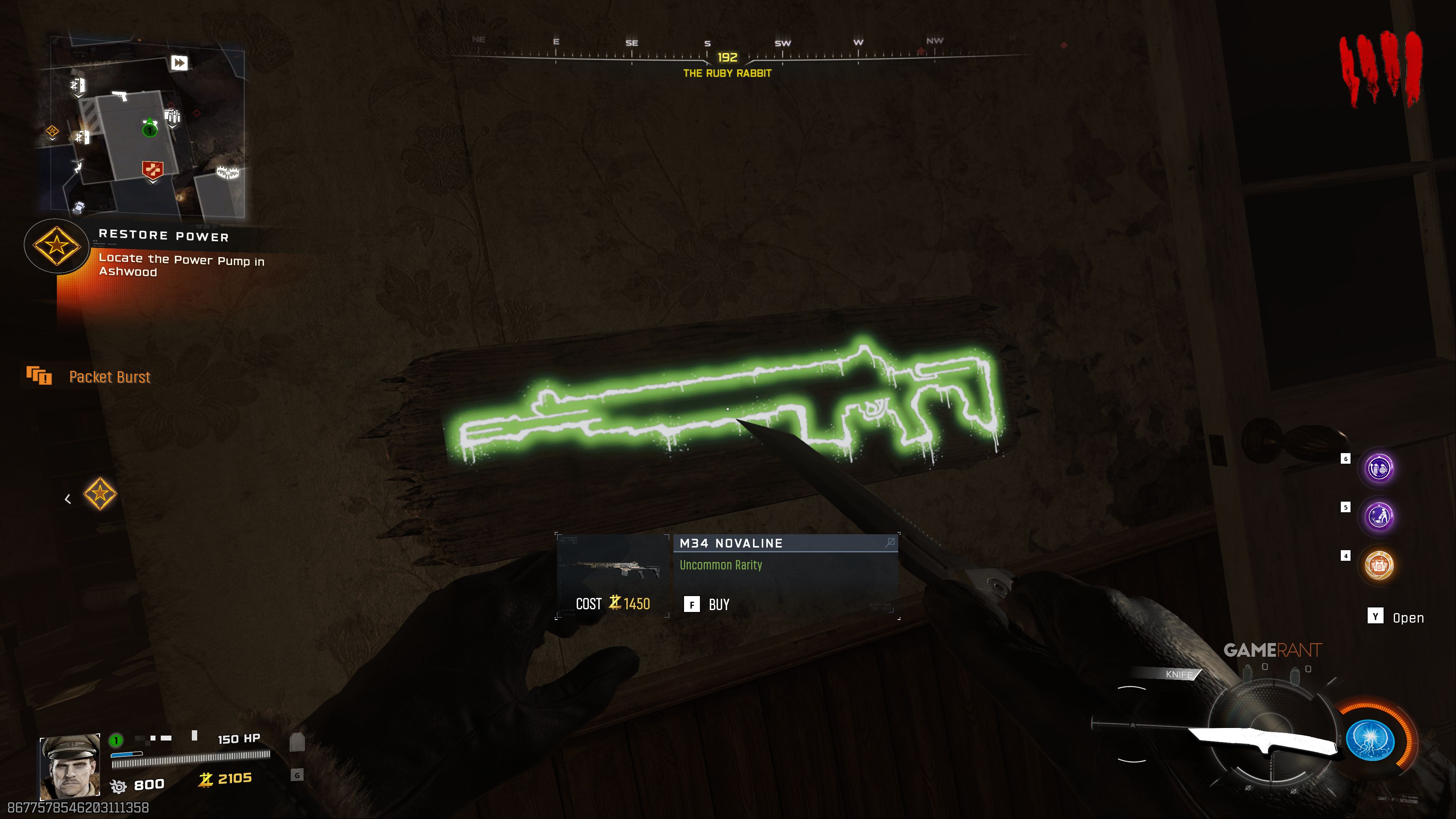 Вы можете найти M34 Novaline на втором этаже бара The Ruby Rabbit, который находится на западной стороне Ashwood. Вход стоит Essence, и вы можете попасть туда либо с Ruby Alley, либо с Ashwood Bridge. Здесь же вы найдете Perk Machine Jugger-Nog.