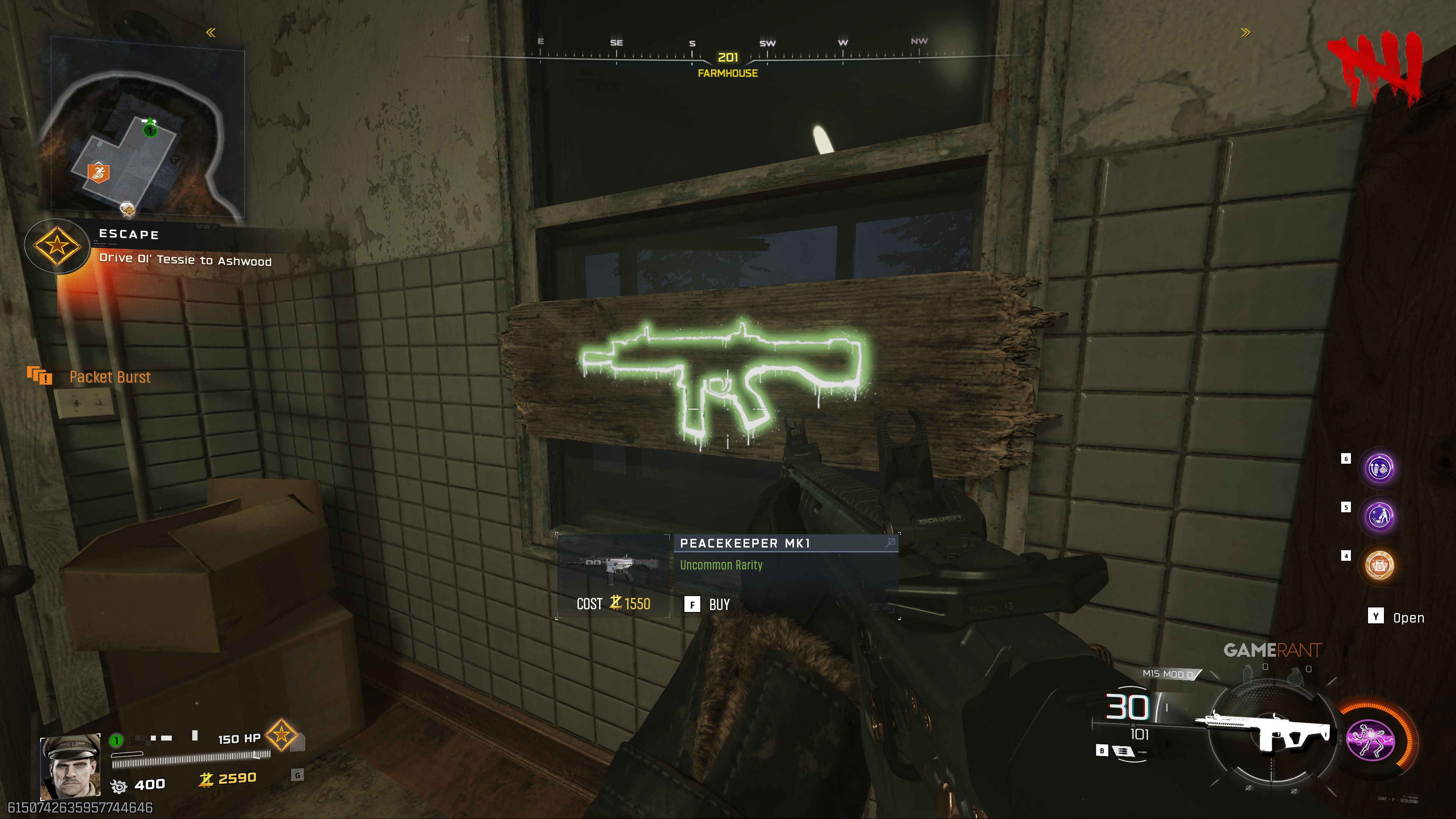 Вы можете найти штурмовую винтовку Peacekeeper Mk1 на первом этаже фермерского дома на ферме Vandorn. Это оружие не доступно бесплатно, как предыдущие покупки Wall Buys – вам потребуется использовать Essence, чтобы разблокировать его.