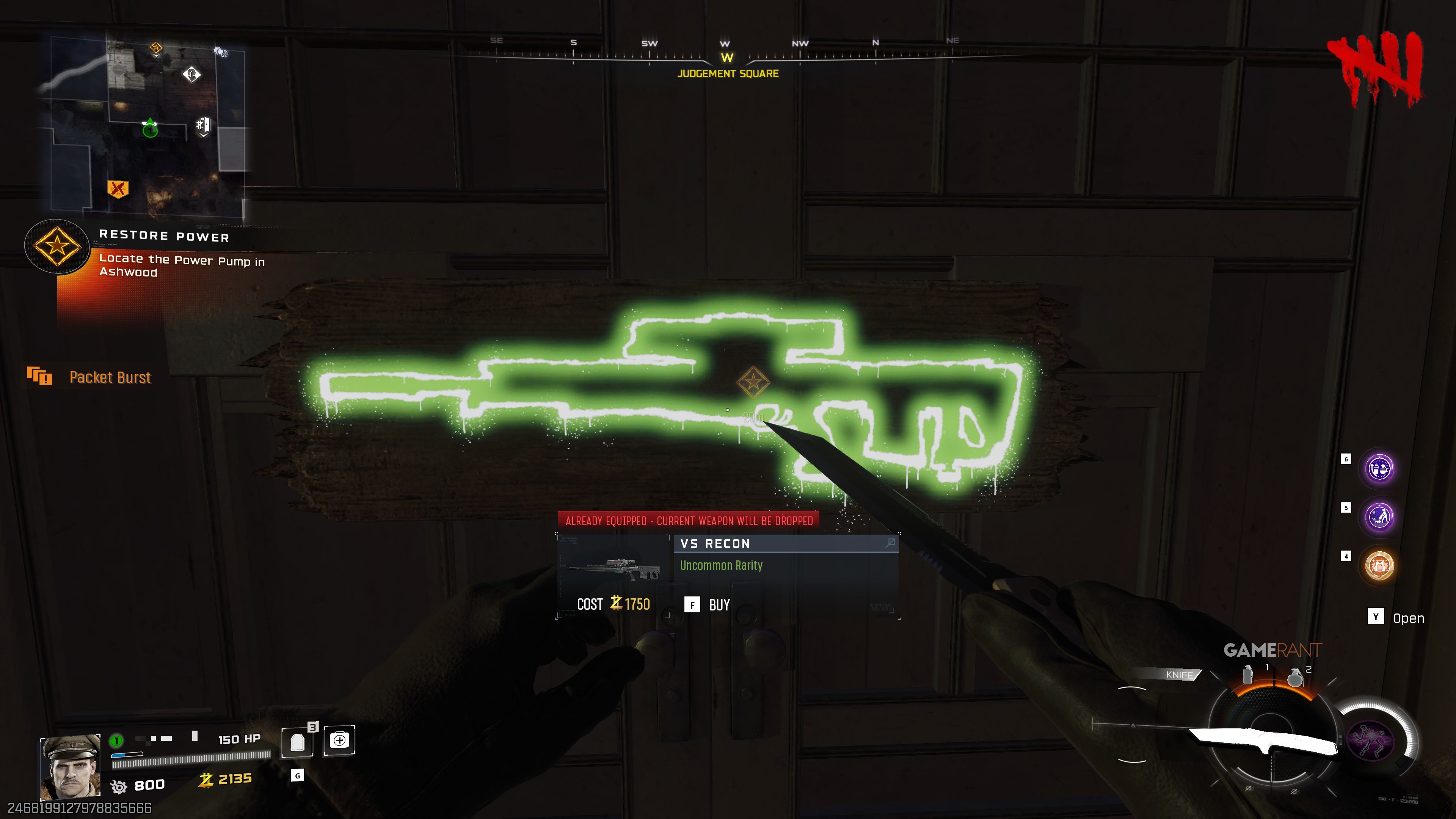 Вы можете найти VS Recon на Площади Суда, прямо у входа в Hargrove’s Mercantile. Wall Buy находится на лестнице слева от баррикады, ведущей к мосту Ashwood Bridge. Рядом также есть автомат Perk Double Tap.