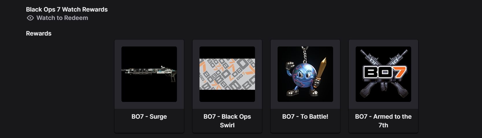 Все награды Twitch Drop для Black Ops 7.