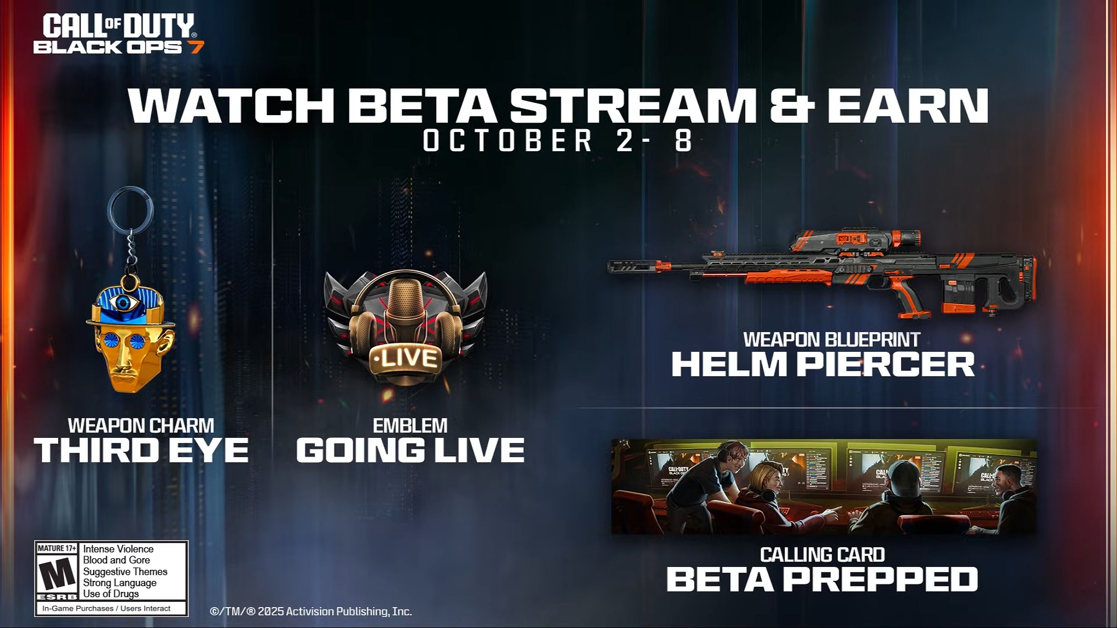 Игроки могут начать получать награды за бета-тестирование, просто участвуя в нём. Эти награды становятся доступными, получая уровни во время бета-тестирования Black Ops 7, которое пройдёт в прямом эфире с 2 по 8 октября в 10:00 по тихоокеанскому времени. Хорошая новость заключается в том, что все заработанные награды будут перенесены в Black Ops 7 при выходе полной игры в ноябре.